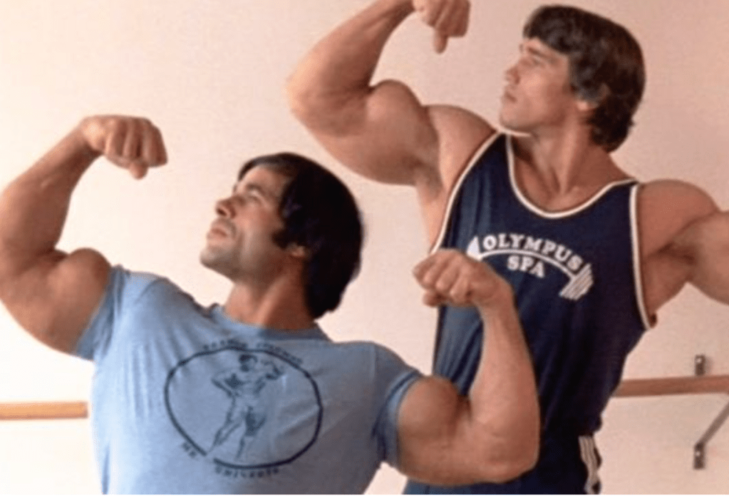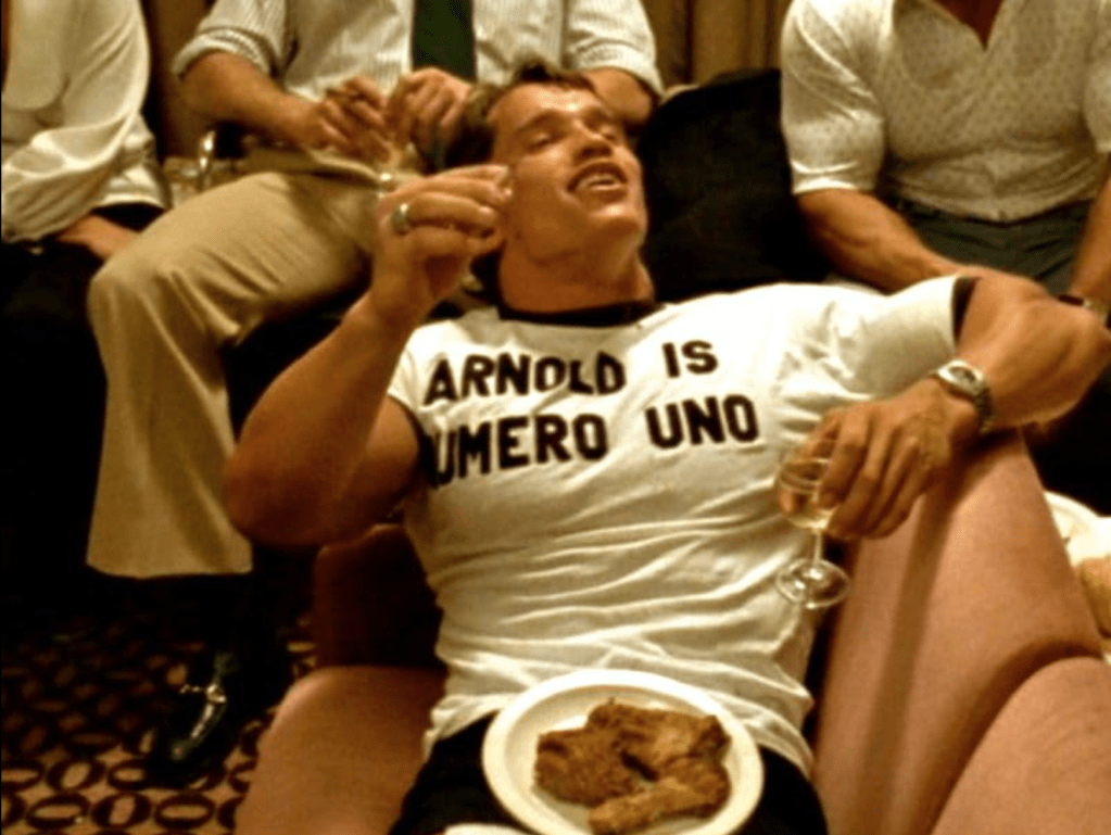 Last month, I watched the messive-guy-documentary Pumping Iron. Disappointingly, it’s not a movie about metalworking production processes. The film is much more about Arnold Schwarzenegger & more musculeros preparing for the Mr. Universe 1975 contest. There are tons of dumbbells being lifted. They spur each other on until they puke from exhaustion. Afterwards, the training continues. There is bragging in front of each other. Smearing each other with oil. Teasing each other for competition. They smoke pot together.