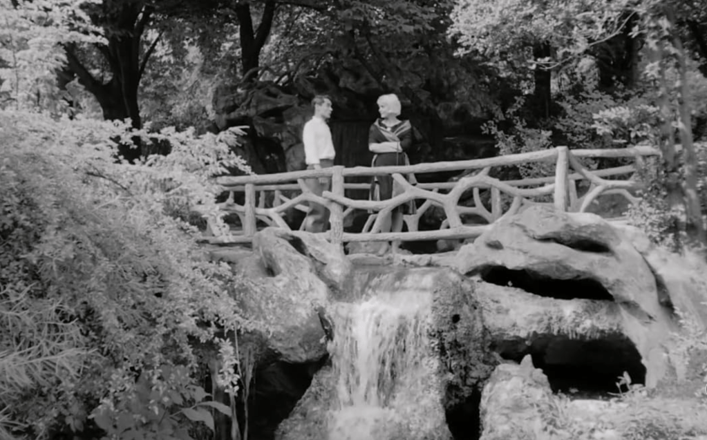 Cléo, short for Cleopatra, is – as we learn later – not her civil name at all. It is the name she is given. She – the royal one or she – who is made queen – is actually called Florence – the blooming one. And she also blossoms in a park from her withered existence when, near a waterfall, she meets the young soldier Antoine, who is also enjoying what may be his last existence in this kingdom of nature before he leaves for the Algerian civil war. With him as her interlocutor, she soon finds herself a mirrored soul. In this final and longest chapter, the wait becomes a bit more bearable, fulfilling, and healing. The emotional strength of this chapter is indescribable. Rarely have I seen such a wonderful portrayal between two perfect strangers who can discover so much hope and lightness in their constricted existence. The discovery of the present, of existence, of existence in this very second and the fading out of the closed past (fame, masquerade) and the open future (healthy or sick), because both don’t matter in that moment.