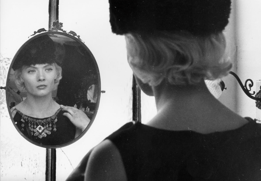 Cléo, who is a successful and carefree singer, is forced by the waiting to see herself for the first time. At first, she seeks support in the mirror; gazes into her healthy and beautiful exterior, caresses and comforts herself with beauty; enjoys when pedestrians’ gazes fall upon her. She seems to exist only when she is marveled at and comforted; seems to be subject only then. But this consolation almost does not work; her always objectified role of the beautiful, the longing and the musical shatters her self, her perception as self, her courage and her vitality. For the first time she becomes aware, beneath the supple surface of her skin, that there is something else lurking within her. And so the escape from the theater becomes a touching search for the subjective, the existential self. For this, Cléo must shed her masquerade, shed everything she is known and famous for; for this, she must endure the infernal stares of people who relentlessly look at her and devour her because she is not what she seems. Cléo must endure this until she reaches where mercy awaits her and what she is really looking for: herself.