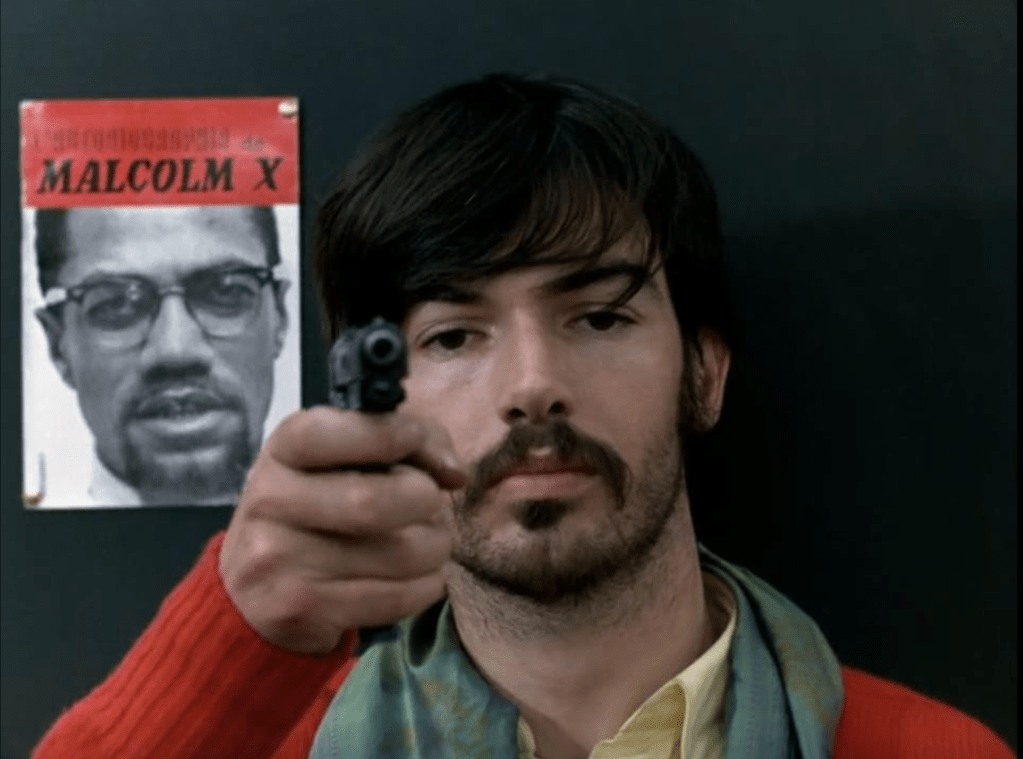In the colorful film “La Chinoise,” Godard stages the various socialist voices through satirical, absurdist collages. Above all, however, he stages the unworldliness of the intellectuals who, in over-thinking and over-philosophizing, have inflated an ideological filter bubble consisting of a lot of hot air; who always think they are holding up the proletariat, but are as far away from the proletariat as they can get and instead integrate the only proletarian only for what she is useful for: cleaning and groping.