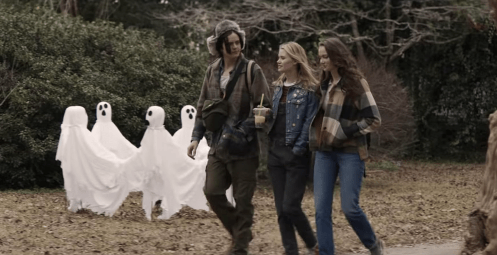 Then they try to tell something like a story. Something about the True Crime podcasters, who I couldn’t care less about; something about Laurie Strode, who escaped from Mikey-boy back in 1978 and is now a super tough, super armed, super paranoid bad ass bitch, in front of whom even John Rambo gets raisin nuts and who is important for the film, so that the old Mikey-boy fans ram into the cinema; then there’s something about her daughter Karen, who also only found her way into the film because she’s Laurie’s daughter and has absolutely no right to exist in this film at all; and then there’s something about her daughter Allyson, Laurie’s granddaughter, who with her teenage years appeals exactly to the target group that is also in their teenage years and has possibly never seen or heard of Mikey-boy. But that doesn’t matter for this “sequel”.