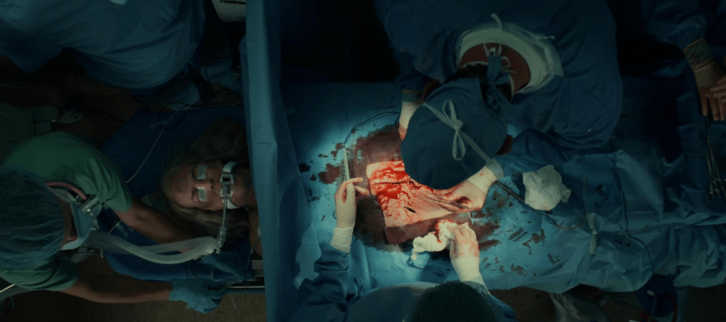 “Evil dies tonight,” it says again and again, and at some point I don’t even itch anymore; the murders, the victims, the kills, the mob trumpeting their eternally same slogan. I’m completely numb, just like Michi’s knife, which he rams into the body of one after the other. They don’t even bother to introduce closeable characters anymore, who offer a projection surface for their own fears, so that I can shiver with horror, and at worst even pee my pants. Even the main characters from the first part, namely Laurie Strode, daughter Karen Strode and granddaughter Allyson Strode, degenerate here into complete sideshow characters who fritter away 80% of the film in the hospital, where the Michi never sets foot. Instead, the story is devoted to the mob, which actually makes it to Laurie & Family’s hospital and causes quite a stir there.