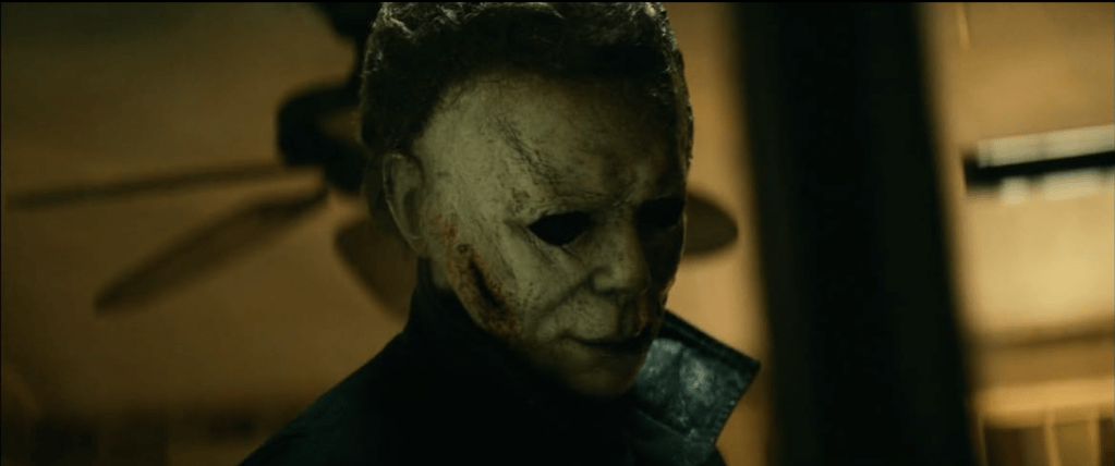 “Evil dies tonight,” it says again and again, and I think hard about who is actually meant by “evil.” Is it really Michi? A stocktaking after the end of the film shows for me: Died “tonight” are above all the Haddonfielders, who jump over Michi’s blade in rows. Michi, on the other hand, was not even batted an eyelash. So is the population of Haddonfield actually meant by this pathetically unimaginative slogan as “the evil” that “dies tonight”. And in principle, let’s face it, of course the Haddonfielders have to die, because otherwise we wouldn’t be watching the movie at all. The hero in this story is Michael Myers, because he is – with the exception of part 3 – the only constant in all Halloween movies. It’s only because of him that we watch Halloween at all, not because of Laurie Strode or the dumb bunch of monkeys that roam the empty streets as self-appointed vigilantes. Michi is depicted on the posters. There are Halloween costumes, merchandise, etc. from him. We don’t want anyone from the Strode clan, Dr. Loony Loomis, the mob or anyone else to get Michael Myers, we want them to get a good beating from Michael Myers. Once Myers is dead, the movie ends for us, the franchise ends for us. Only with him can the franchise continue. Whoever wants to take that away from us has to be the true evil, and that is now the Haddonfield population, who want to stop him and destroy him once and for all. True story, I’m sorry. And also – doesn’t matter, but I’ll bring it up anyway – doesn’t the name Michael also mean “Who’s like God?” you godless Myers rabble-rousers!??