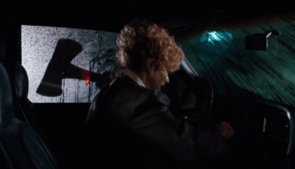 His latest case: The Night Slasher and his henchmen. Wearing masks and wielding knives, they prowl the nightshade, slashing innocent citizens with relish. Only the permed face Ingrid (Brigitte Nielsen) was able to escape them before her hair was cut short. She also has a secret: she is an Amazon-like barbarian because she dips her chips in ketchup until the potato sticks look like blood-stained fingers. Despite this and her marginal acting skills, she is protected by