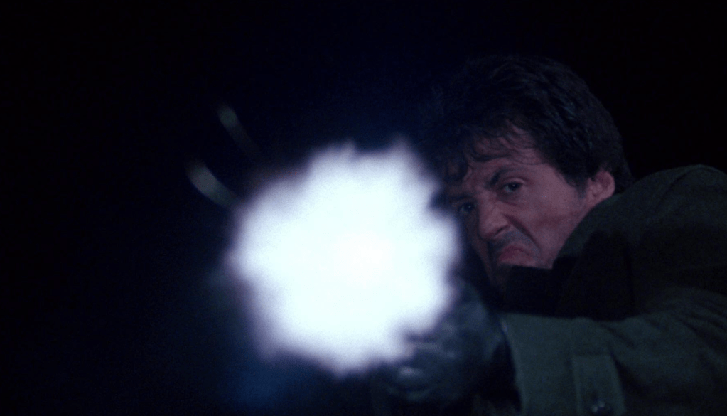 Stallone gets into his son’s wardrobe to dress up as a tough cop and stroll around dark Los Angeles to catch the Night Slasher. Yeah, and there is Brigitte Nielsen, because .. yeah, she is in it, doing things, ehm, yeah.