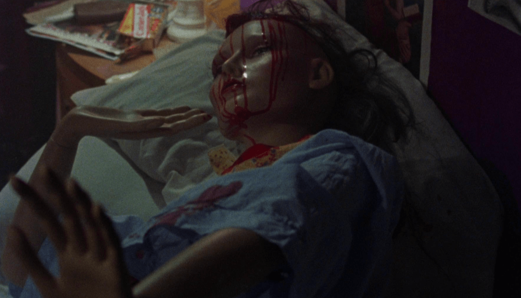 His schizophrenia behind the burn scars seems to be tamed only by a female photographer, because she also preserves the women around her with a camera that lights up like a flash when he fires, just like his shotgun. She objectifies people for her art, just like the dead woman, scalped and reborn in the mannequins that keep him company. And only the photographer manages to escape his murderous hands; she, who looks like his mother, to whom he is still submissive; in whom his schizophrenia first rises when the photographer kisses him maternally and begins to condemn him when he gets the feeling he is about to be locked back in the bathroom by the disappointed, evil mother, while she writhes in lust with all of New York City.